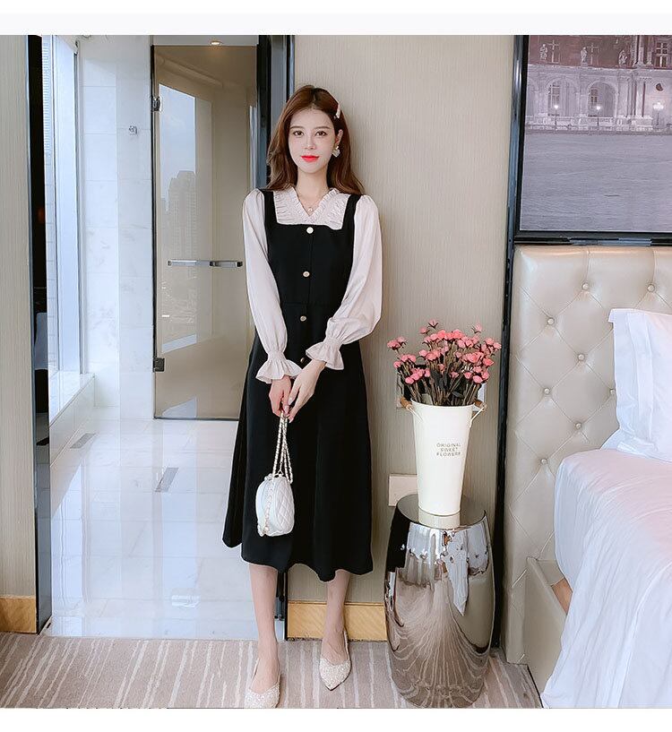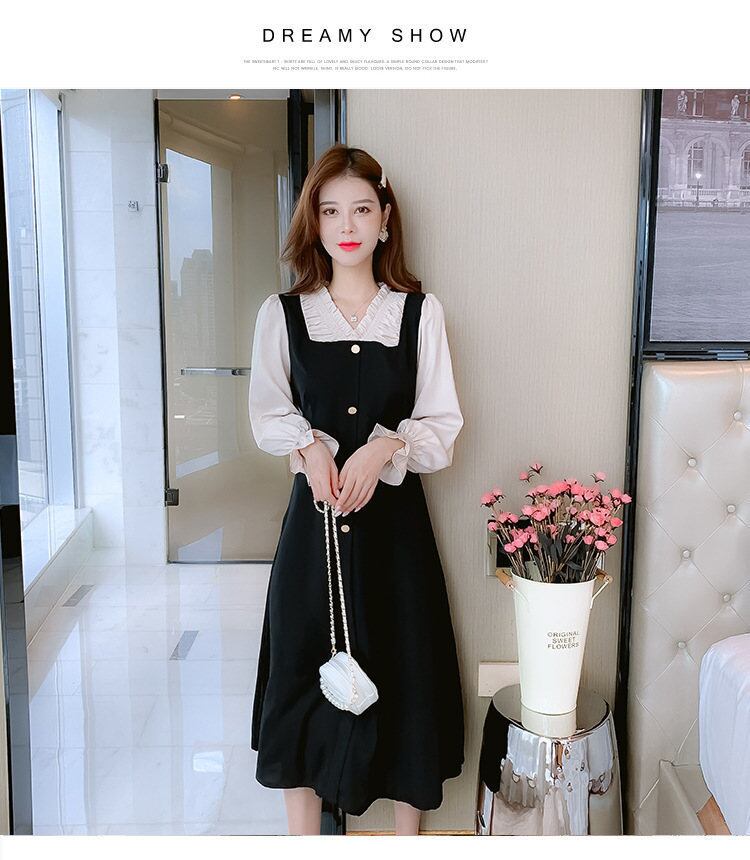 ワンピース 長袖 レディース S-LL バイカラー 大人 上品 かわいい 結婚式 エレガント Aライン フェミニン 韓国 ファッション コーデ おすすめ カジュアル きれいめ 大きいサイズ 人気 ゆったり 20代 30代 40代 50代